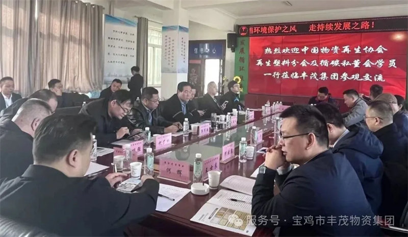 2025年11月13日上午,中国物资再生协会再生塑料分会及循碳私董会学员一行莅临宝鸡丰茂物资集团,开展深度参观交流活动。集团董事长王海文、执行董事王涛、总经理贾伟携集团领导班子成员及部门负责人全程陪同参访,与行业同仁共谋发展机遇。